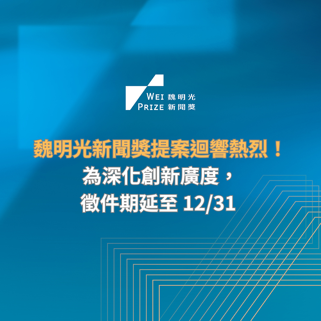 魏明光新聞獎提案迴響熱烈!為深化創新廣度,徵件期延至 12/31